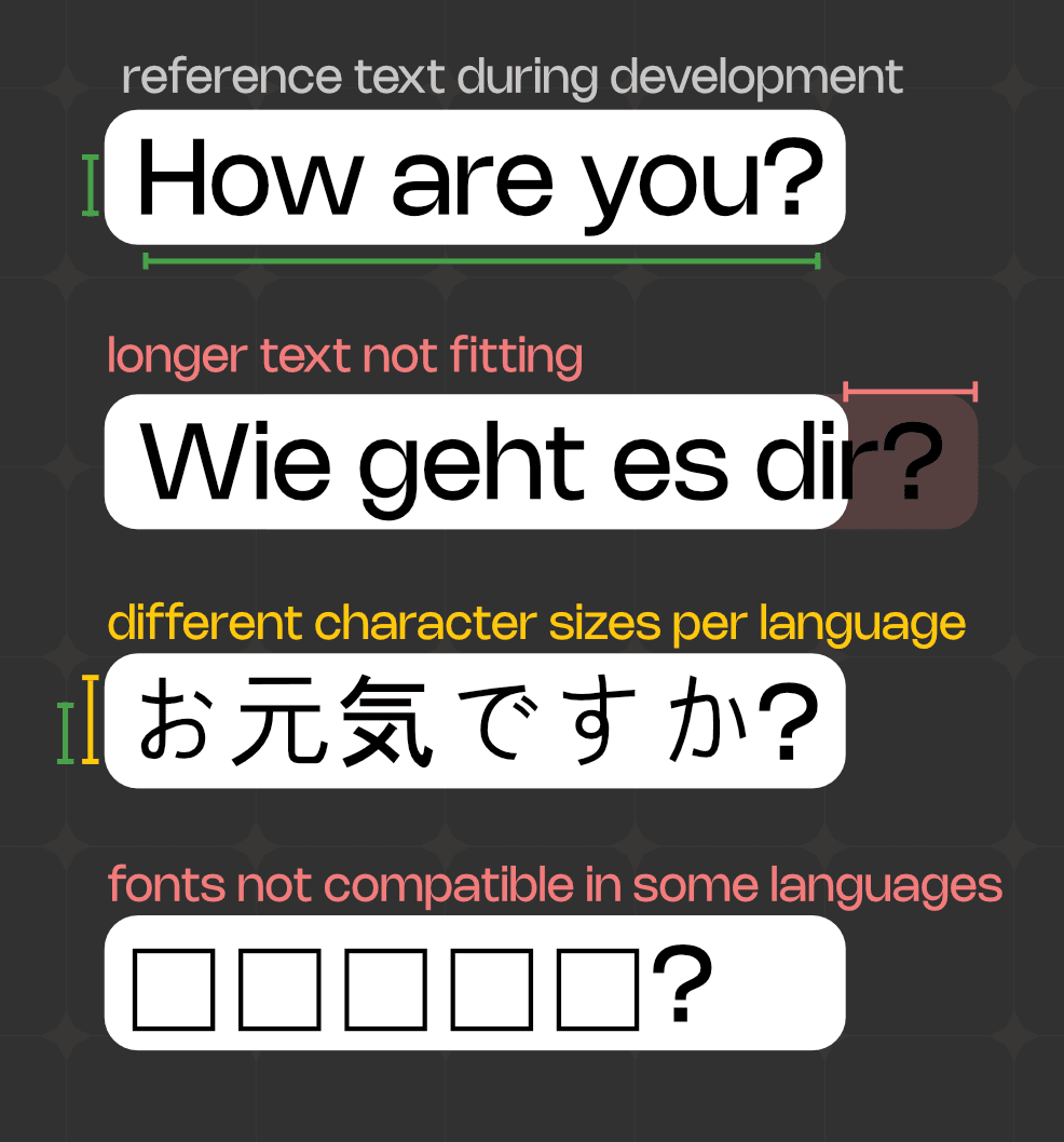 We build the technical systems that make your game work across multiple languages, from dynamic text layout, RTL support, pixel art font rendering and automated testing. We have supported more than 15+ languages on the same project and also built Text Animator, the text system used by 20.000+ game teams worldwide.
